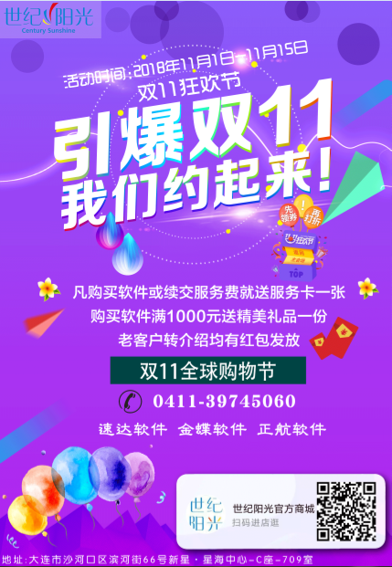 引爆雙11!我們約起來~!11月1日—11月15日 凡購買軟件或續交服務費都有禮品相送,老客戶轉介紹均有紅包發放!
