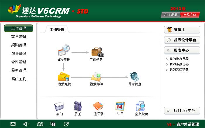 《速達(dá)V6-客戶關(guān)系管理-STD》作為速達(dá)V系列專業(yè)的客戶關(guān)系管理平臺(tái),特別適合中小企業(yè)使用。產(chǎn)品全面整合客戶管理、工作管理、市場(chǎng)推廣、進(jìn)銷存管理、移動(dòng)應(yīng)用等管理環(huán)節(jié),幫助企業(yè)建立完善的客戶關(guān)系管理平臺(tái),充分挖掘客戶潛力,實(shí)現(xiàn)企業(yè)利益最大化。平臺(tái)科學(xué)地融入Builder-Ⅲ二次研發(fā)工具,真正實(shí)現(xiàn)了產(chǎn)品平臺(tái)化,滿足企業(yè)管理個(gè)性化需求,為企業(yè)提供全新的一體化客戶關(guān)系管理解決方案。