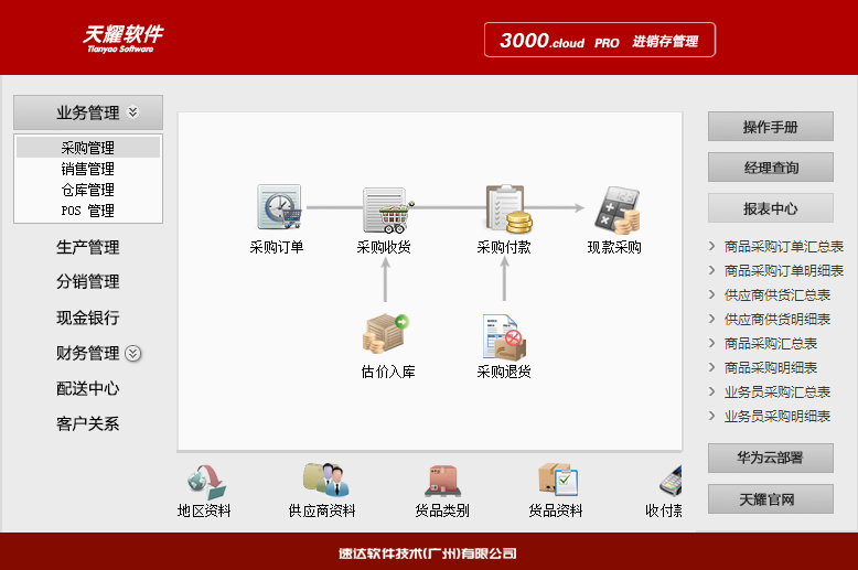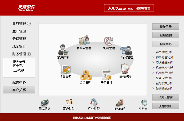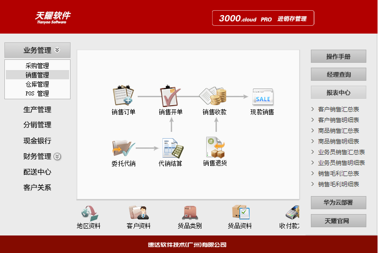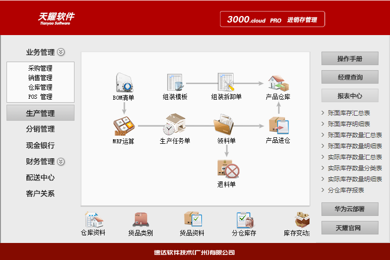 《天耀3000.cloud-PRO 》集進銷存、POS、財務、CRM為一體的中小企業(yè)管理軟件。軟件支持云部署 和桌面服務器部署及APP部署,高度滿足企業(yè)應用需求,大大提升了應用效率和安全性。 軟件支持局域網/互聯網多用戶應用,實現異地多機構、多店面、多倉庫等遠程應用,支持APP移動端 應用,數據實時同步,安全、穩(wěn)定、高效、易維護,特別適合中小企業(yè)使用。